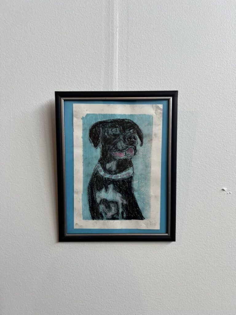“Pearl is my dog that passed away recently… this is my favorite picture of her so I re-created her in this piece with pastel. ”