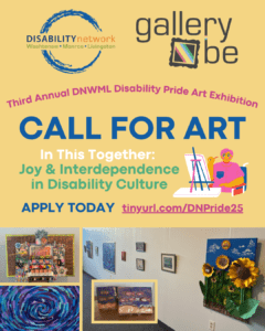 Exhibition dates July 1 to Aug 15, 2025 during Disability Pride Month at the DNWML Washtenaw Office.