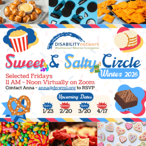 Join us this Winter session of Sweet & Salty Circle, where we’ll dive into cookies, candy, chips, and conversation, all through the lens of living with disability.